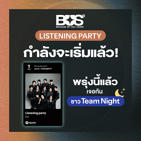 BUS ยังสร้างประวัติศาสตร์ด้วยการเป็นศิลปินไทยกลุ่มแรกที่จัด Spotify Listening Party ถึง 2 วัน โดยเปิดโอกาสให้ BEUS จากทั่วทุกมุมโลกได้เข้ามาสัมผัสจักรวาลของอัลบั้ม BECAUSE OF YOU, I SHINE อย่างใกล้ชิด