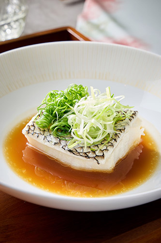 สำหรับจานหลักสี่จานที่ชวนให้ลิ้มลอง ประกอบด้วย นกพิราบทอดกรอบ ซี่โครงเนื้อตุ๋นซอสจู โห่ว, หมูดำไอบริโก้นึ่งไข่เค็ม และ ผัดผักตามฤดูกาลใส่ซอสขิงและกุ้งซากุระ