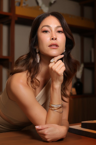 โดยไม่พลาด ที่จะเลือก กำไล ต่างหู และแหวน สี Yellow Gold จากคอลเลกชัน Lunaria มาคอมพลีทลุคสุดปัง ปิดท้ายด้วยสาวสายแฟอย่าง ดาว-พิมพ์ทอง มาในแมกซี่เดรสยาว โทนเทาอ่อน เพิ่มลูกเล่นด้วยจิวเวลรี่ครบเซ็ต ไม่ว่าจะเป็น สร้อยคอ กำไล ต่างหู และแหวน สี White Gold จากคอลเลกชัน Masai ทำให้ลุคนี้มีมิติ และสะท้อนความงดงามเหนือกาลเวลาตามแบบฉบับของแบรนด์