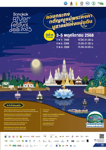 “Bangkok River Festival 2025 สายน้ำแห่งวัฒนธรรมไทย” ปีที่ 11 “ลอยกระทงกตัญญูแม่พระคงคา บูชาแม่แห่งแผ่นดิน” ขอเชิญร่วมถวายความอาลัยและน้อมรำลึกในพระมหากรุณาธิคุณ สมเด็จพระนางเจ้าสิริกิติ์ พระบรมราชินีนาถ พระบรมราชชนนีพันปีหลวง