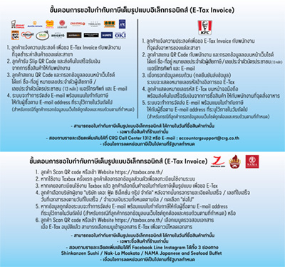• สามารถขอใบกำกับภาษีในรูปแบบอิเล็กทรอนิกส์ได้ ภายในวันที่ซื้อสินค้าเท่านั้น