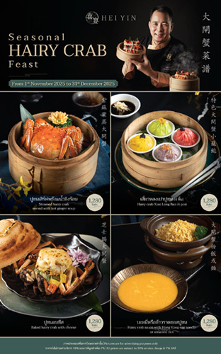 ร้านอาหารจีนระดับพรีเมียม “เฮยยิน” (Hei Yin) ณ ชั้น 3 เกษรวิลเลจ เชิญคุณร่วมสัมผัสความอร่อยอันล้ำค่าที่กลับมาอีกครั้งกับ “เทศกาลปูขน ประจำปี 2568” วัตถุดิบรสเลิศแห่งฤดูหนาวจากแม่น้ำแยงซีเกียง