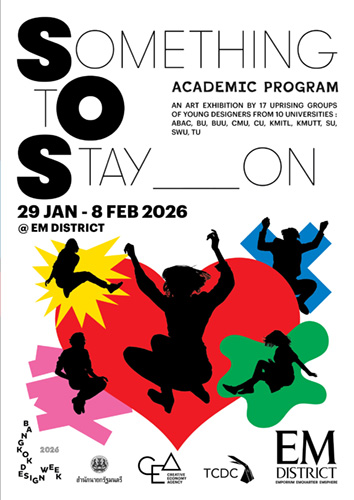 ภายใต้ธีม “DESIGN S/O/S” เพื่อส่งสัญญาณระดมพลนักออกแบบและนักสร้างสรรค์ในทุกสาขาให้มาร่วมกันคิดและลงมือครีเอทความสร้างสรรค์ในแบบฉบับของตัวเอง ชมผลงานจากการออกแบบของเหล่านักศึกษาในโครงการ Academic Program (อะคาเดมิค โปรแกรม) ต่อเนื่องเป็นปีที่ 2